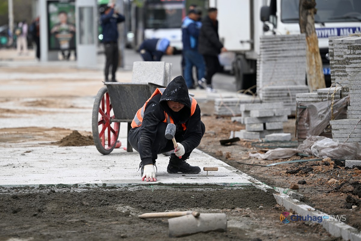 Энэ талаар НХОГ-ын Барилга захиалагчийн хяналтын хэлтсийн дарга Б.Ганзориг “Өнгөрсөн онд нийслэлийн хэмжээнд 54.2 км урт, 195 мянган ам метр явган хүний замыг байгалийн чулуун хавтангаар тохижуулсан. Энэ хүрээнд холбоо мэдээллийн сувагчлал, гэрэлтүүлгийн цахилгааны кабель угсрах ажлыг цогцоор нь хийсэн юм. Гэсэн хэдий ч өнгөрсөн оны нэг байршлын ажлыг он дамжин хэрэгжүүлэхээр болсон. Учир нь Энхтайваны өргөн чөлөөний нэг багц ажлын гүйцэтгэгчийн хариуцлагагүй, удаашралтай байдлаас шалтгаалж тухайн байршлын гэрээг цуцалсан юм. Ийнхүү энэ онд тухайн багцыг гурван багц тендер болгон, нээлттэй сонгон шалгаруулалтыг зарласан. Гүйцэтгэгч нь шалгарсны дараа шинэчлэлтийн ажлыг эхлүүлэхээр төлөвлөж байна” гэв.