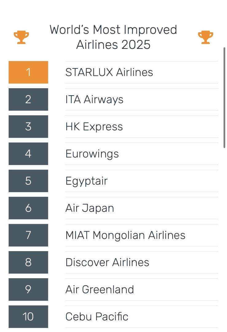 Уг жагсаалтыг 650 гаруй агаарын хөлөгтэй Тайванийн “Starlux” компани тэргүүлсэн бол түүний араас Италийн “ITA Airways”, Хонгконгийн “HK Express”, Германийн “Eurowings” зэрэг олон улсад асар өргөн сүлжээтэй агаарын тээвэрлэгчид нэрлэгдсэн байна.