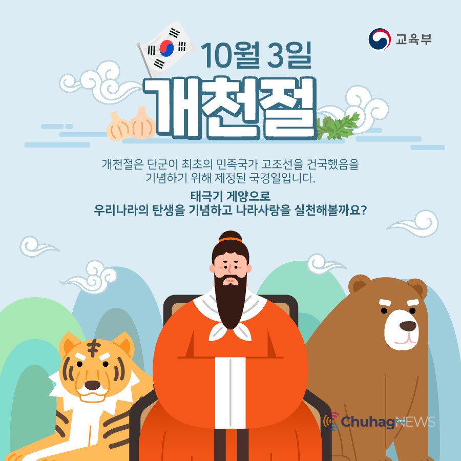 Өнөөдөр 10-р сарын 3. Энэ өдөр Бүгд Найрамдах Солонгос Улсад “Тэнгэр нээгдсэн өдөр” буюу 개천절 (Гэчончол) хэмээх Үндэсний баярын өдрийг өргөн дэлгэр тэмдэглэдэг. Энэ бол Солонгосын анхны төр улс байгуулагдсан түүхт өдөр бөгөөд тус баяр нь Солонгосын ард түмний эхлэл, үндэсний угсаа гарвалыг бэлгэдсэн онцгой ач холбогдолтой билээ.