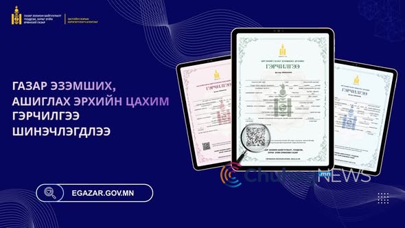 Газар зохион байгуулалт, геодези, зураг зүйн ерөнхий газрын даргын 2025 оны А/185 дугаар “Загвар, маягт батлах тухай” тушаал батлагдсан. Уг тушаалын дагуу иргэн хуулийн этгээдийн газар эзэмших, ашиглах эрхийн цахим гэрчилгээний загварыг шинэчлэн, улсын хэмжээнд үйлчилгээнд нэвтрүүлж эхэллээ. Шинэчилсэн цахим гэрчилгээ нь дараах давуу байдлыг бүрдүүлсэн болно. Үүнд: