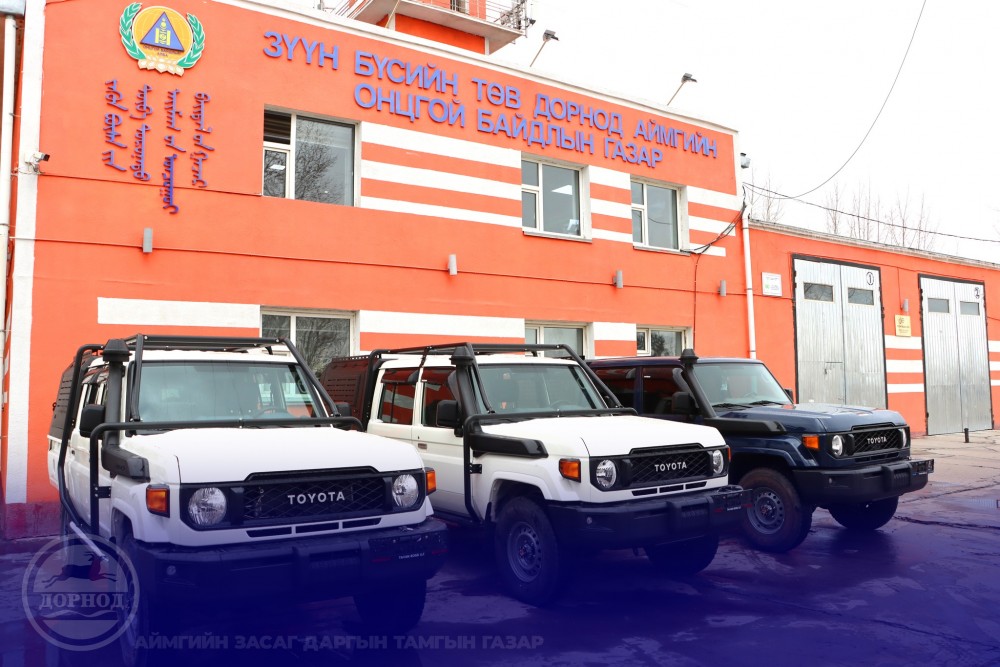 Энэ дагуу Дорнод аймгийн Баяндун, Гурванзагал, Чулуунхороот сумдын Засаг даргын тамгын газарт туулах чадвар сайтай автомашин олгосныг ОБЕГ-ын тэргүүн дэд дарга бөгөөд штабын дарга, бригадын генерал Ц.Ганзориг тус аймагт ажиллах үеэрээ гардуулан өглөө.